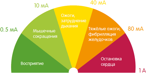 | Исследования, проводимые в разных странах мира, показывают, что серьёзность поражения электрическим током определяются силой тока, проходящего через тело человека.